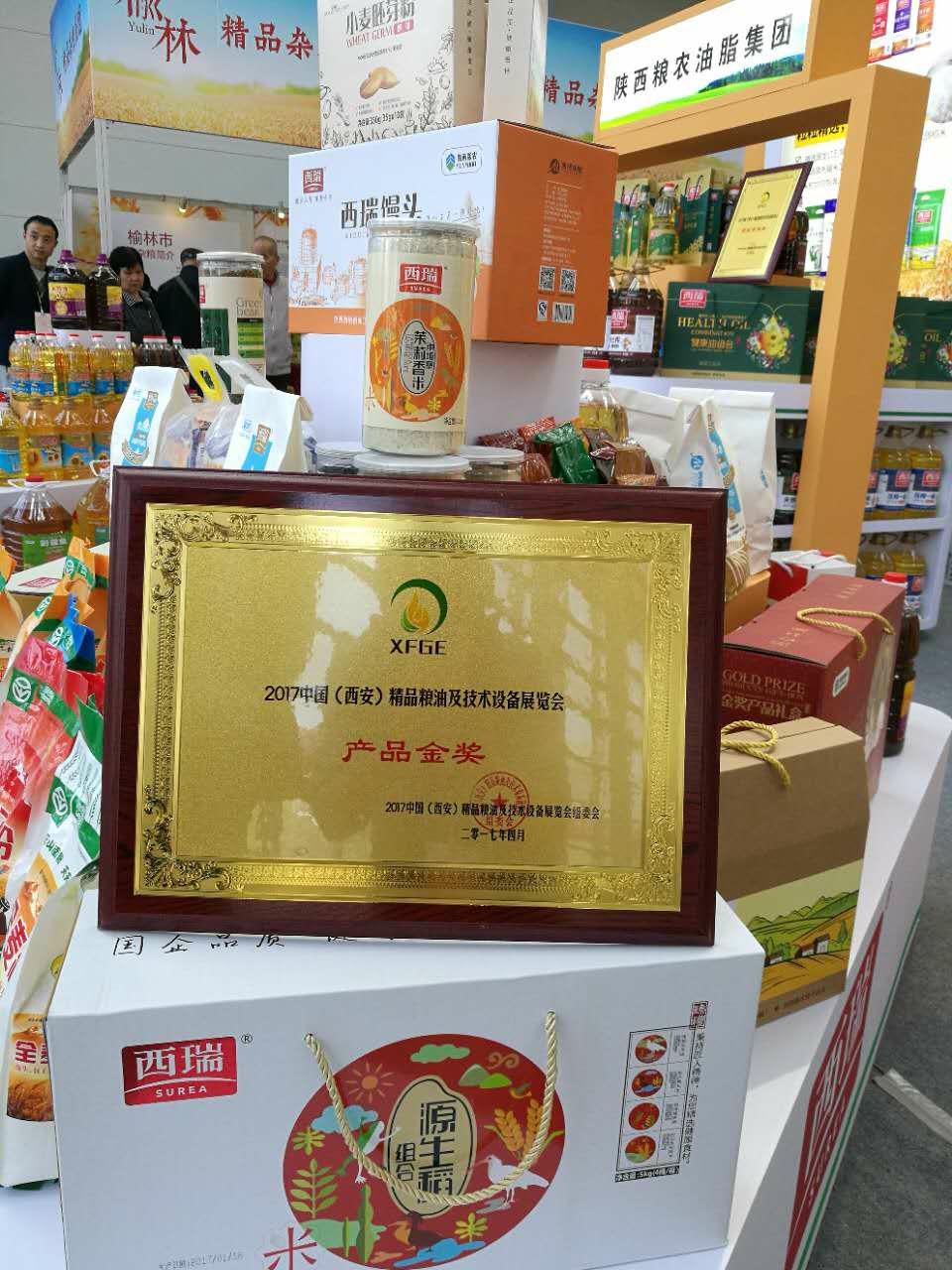 本屆展會(huì),陜西糧農(nóng)旗下西瑞牌冰花粉、西瑞牌小麥粉饅頭、西瑞牌農(nóng)家土榨菜籽油、西瑞牌小麥胚芽粉、秦力牌雪花粉和軍星牌粳米獲得產(chǎn)品金獎(jiǎng)。