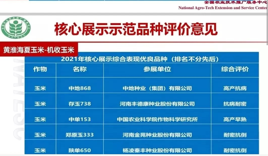 10月22-24日,第十三屆中國(guó)國(guó)際種業(yè)博覽會(huì)暨第十八屆全國(guó)種子信息交流與產(chǎn)品交易會(huì)在山東濟(jì)南舉行。會(huì)上,全國(guó)農(nóng)技中心公布了部分核心展示示范品種評(píng)價(jià)意見(jiàn)和全國(guó)農(nóng)作物種業(yè)頭部企業(yè)。其中,由楊凌秦豐種業(yè)股份有限公司參展、西北農(nóng)林科技大學(xué)薛吉全教授團(tuán)隊(duì)培育的玉米品種“陜單650”入選2021年黃淮海夏玉米(機(jī)收)五大核心展示綜合表現(xiàn)優(yōu)良品種。