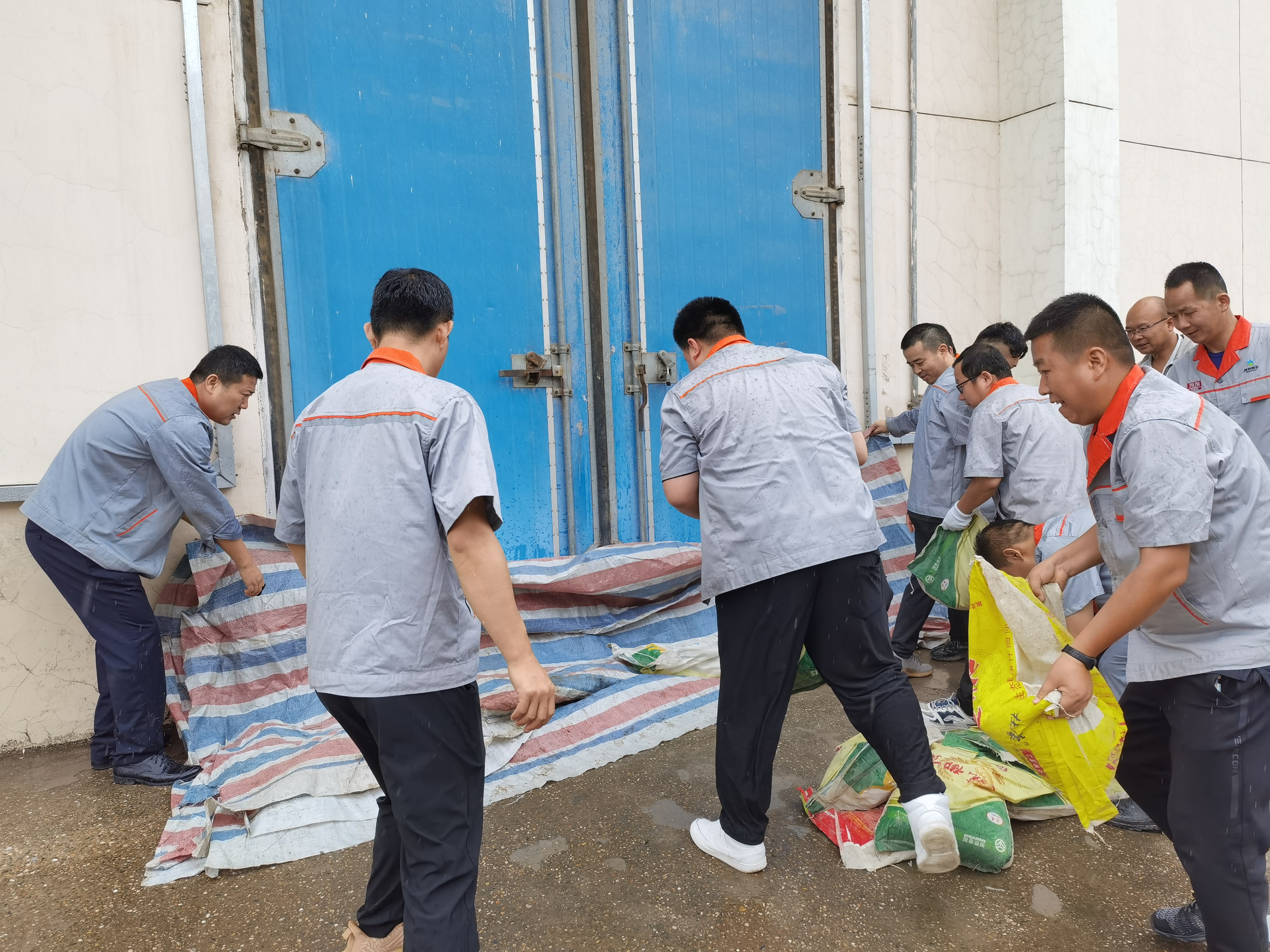 西瑞儲備庫模擬連日暴雨、出現(xiàn)內(nèi)澇、庫區(qū)排水不暢,展開防汛演練,參訓(xùn)人員按照應(yīng)急預(yù)案展開搶險工作,迅速疏通排水井、檢查排水口,用塑料薄膜及防汛沙袋封堵庫門大門,切實(shí)保障糧庫安全。